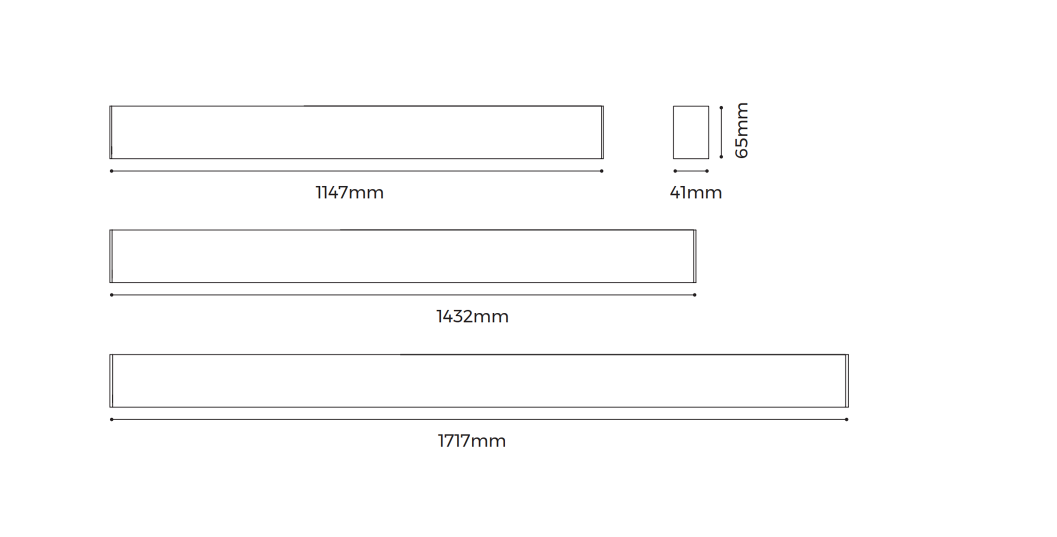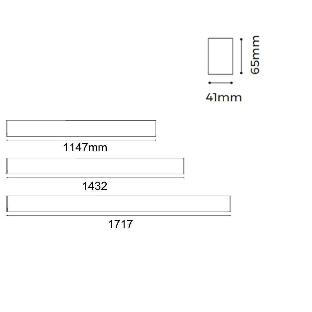 - 1147*41*65mm / 1432*41*65mm / 1717*41*65mm